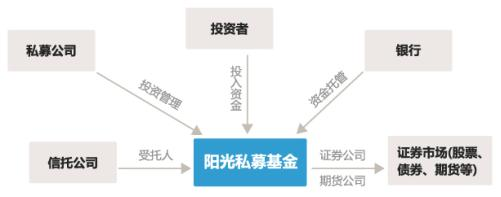 目前市場(chǎng)上大部分的陽光私募基金其實(shí)是信托產(chǎn)品,即通過信托公司發(fā)行的產(chǎn)品,通過信托合同規(guī)定各方的權(quán)利與義務(wù)。陽光私募基金共有四方參與:陽光私募基金公司、信托公司、證券公司和銀行,其中陽光私募基金公司負(fù)責(zé)證券市場(chǎng)投資;信托公司是產(chǎn)品發(fā)行的法律主體,提供產(chǎn)品運(yùn)作的平臺(tái),并承擔(dān)部分監(jiān)管職責(zé);銀行作為資金托管人,保障投資者資金安全;證券公司作為證券托管方,保障證券的安全性。另外,除了通過信托平臺(tái)發(fā)行,還有通過有限合伙企業(yè)、券商資管通道、公募基金一對(duì)一專戶發(fā)行的陽光私募基金。