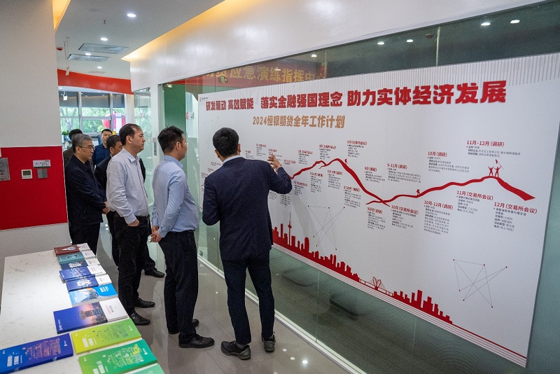 4月17日下午,河北省國資委黨委委員、副主任徐科華到國富投資集團(tuán)所屬恒銀期貨有限公司調(diào)研指導(dǎo)工作,了解了恒銀公司的整體情況,參觀了恒銀公司的直播間、信息技術(shù)部、黨建長廊、期貨投教基地等部門,重點了解了雞蛋、生豬等與國計民生息息相關(guān)的期貨產(chǎn)品的區(qū)間走勢,并對期貨交割庫在河北省的具體分布和發(fā)揮的作用等情況進(jìn)行了深入交流溝通。
