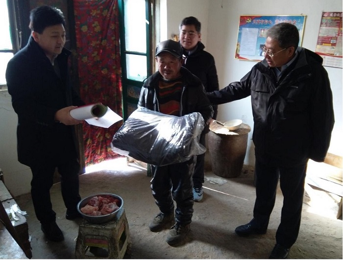 2020年1月8日,國富投資集團黨委副書記韓繼普、副總經(jīng)理邸智彬帶領(lǐng)黨員志愿者,驅(qū)車兩個多小時,來到保定市唐縣北店頭鄉(xiāng)西同龍村,開展春節(jié)前夕送溫暖活動,將暖暖情誼和深深祝福送給貧困戶。